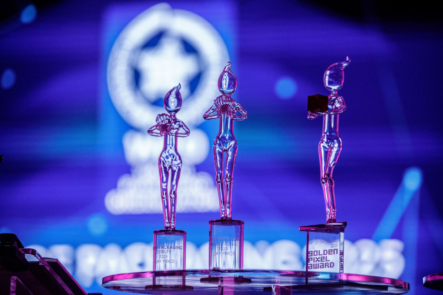 Statuetka ART OF PACKAGING to wyjątkowe dzieło sztuki, wykonane w austriackim Tyrolu w szkole dmuchaczy szkła Swarovskiego. Każda statuetka jest ręcznie robiona, dlatego każda jest inna. Wyjatkowość tego dzieła polega na tym, że umie ją wydmuchiwać tylko jedna osoba, co jest niezwykle unikatowym procesem. Statuetka wykonywana jest według naszego wzoru, który jest zastrzeżony dla ART OF PACKAGING i GOLDEN PIXEL.
