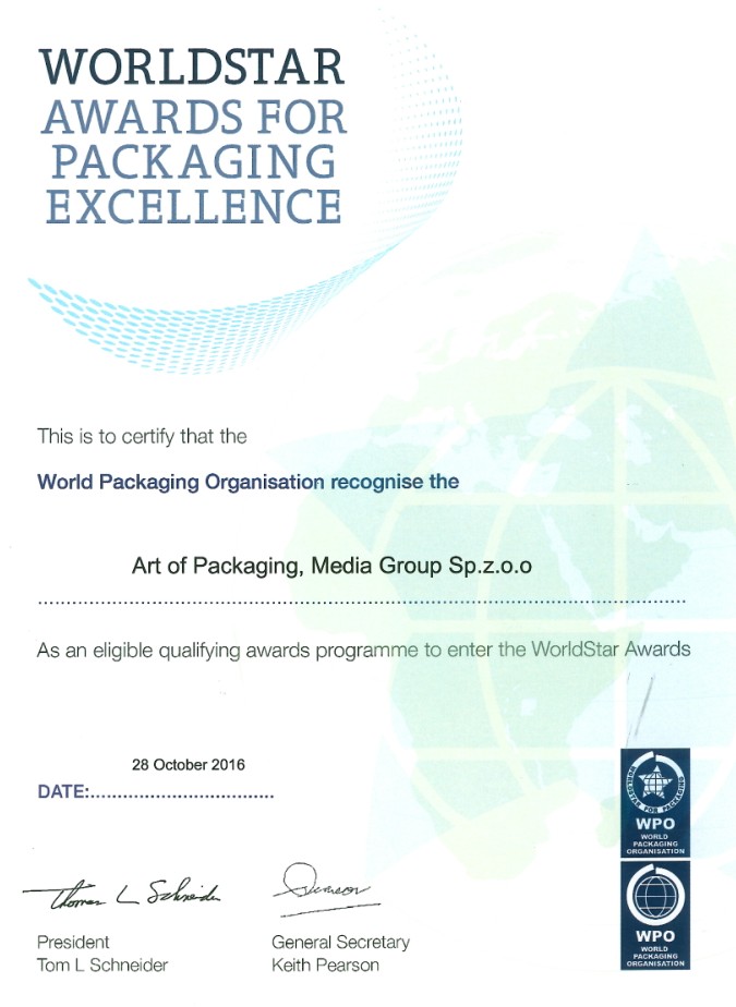 - Międzynarodowy sygnał: jesteśmy najlepsi! ART OF PACKAGING to konkurs uznany przez WPO – jego ZNAK otwiera drzwi na świat.
